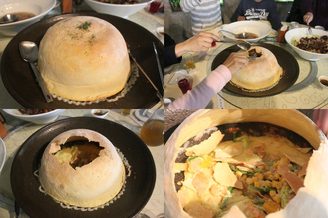 在 從 上 方 開 始 敲 開 大 堡 內 的 焗 水 果 出 現 了