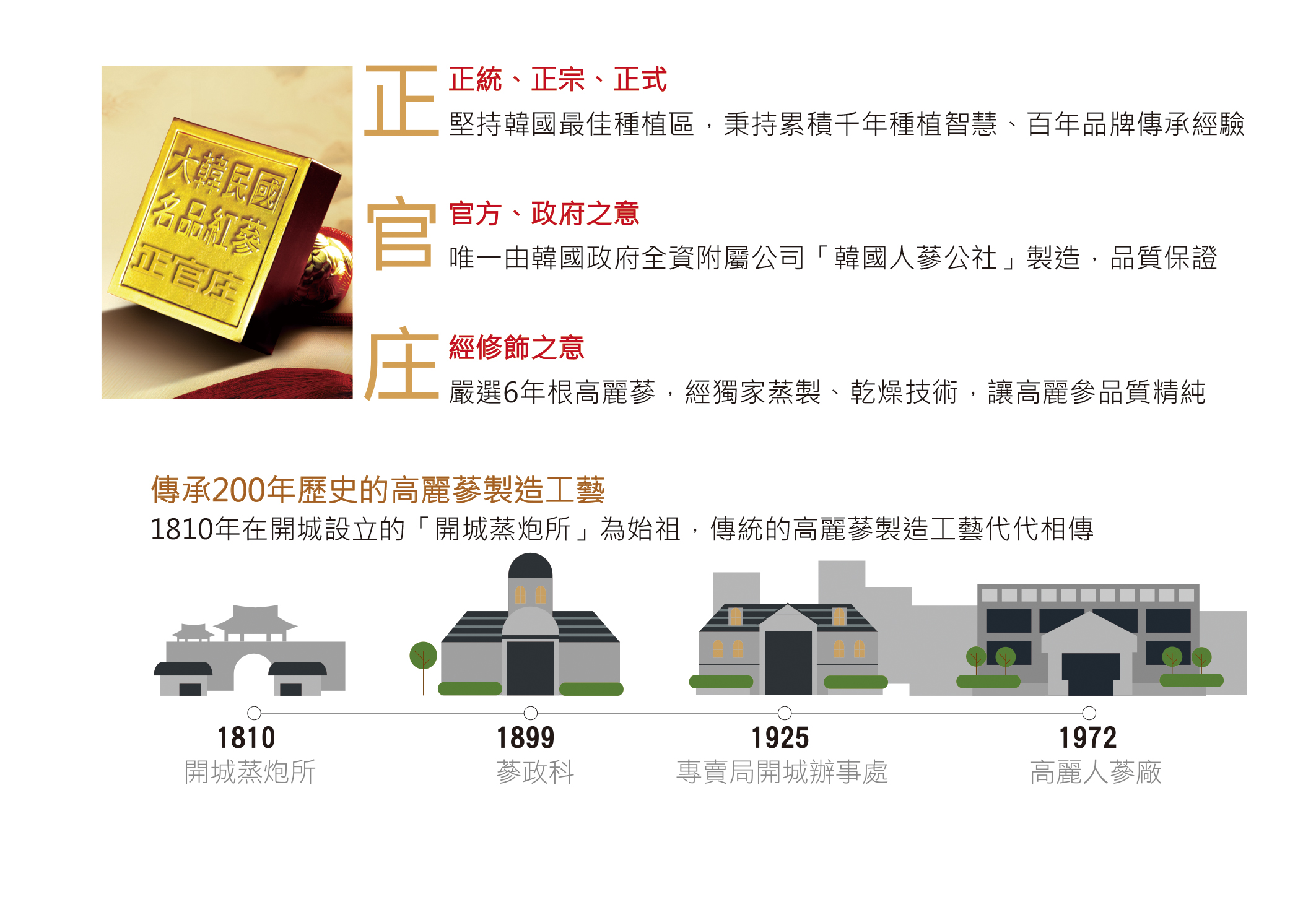 正官庄高麗蔘在每年投資幾十億的人蔘研究開發以及擁有現代設施的高麗蔘製造廠製造的優良高麗蔘